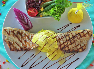 SEA BASS WITH LEMON SAUCE Contents: Marinated Sea bass with fresh spices, with cream and lemon sauce and mashed potato Price: 510 TL